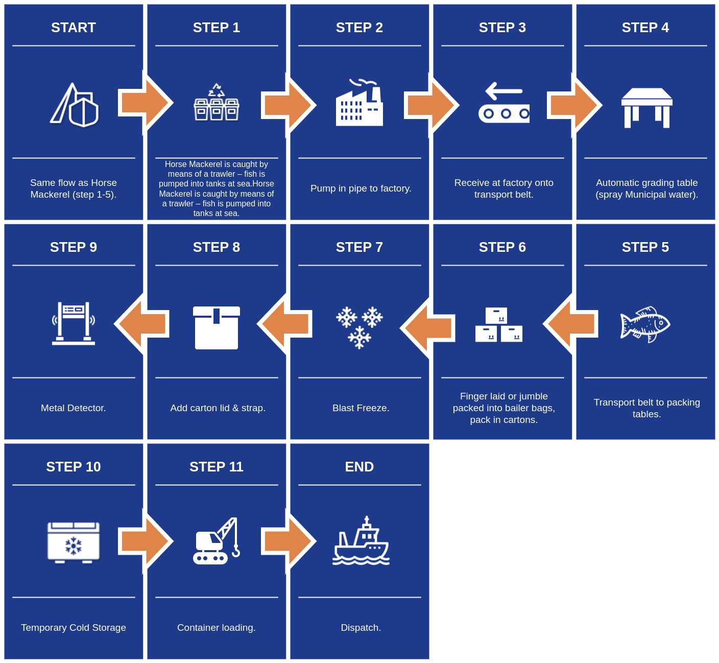 Flow chart for frozen horse mackerel products (exports)