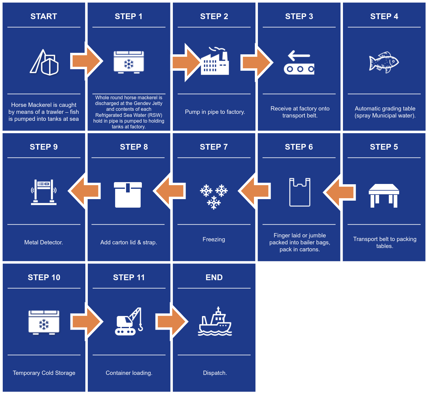 For more information on our accreditations, certifications, and quality assurance measures, please refer to Jonas Lamek. We are constantly exploring opportunities for further process improvements and innovations to streamline our operations and uphold our commitment to excellence in Horse Mackerel processing.