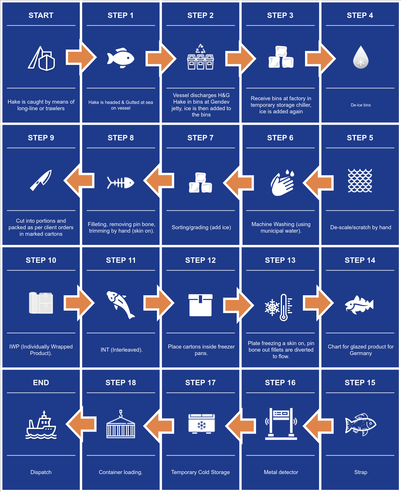 Flow chart for frozen hake products (exports)